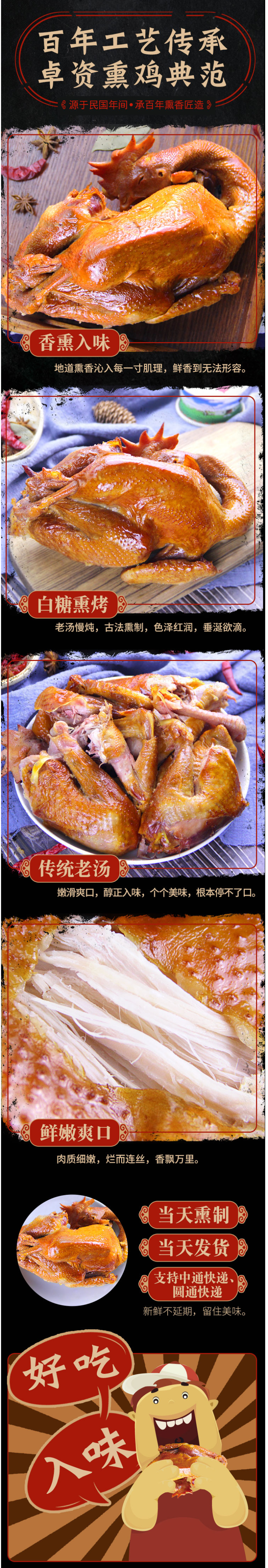 天猫卓滋味旗舰店79元,可领30元优惠券,实付49元到手,每只鸡700g,散养熏鸡,当天熏制当天发货。