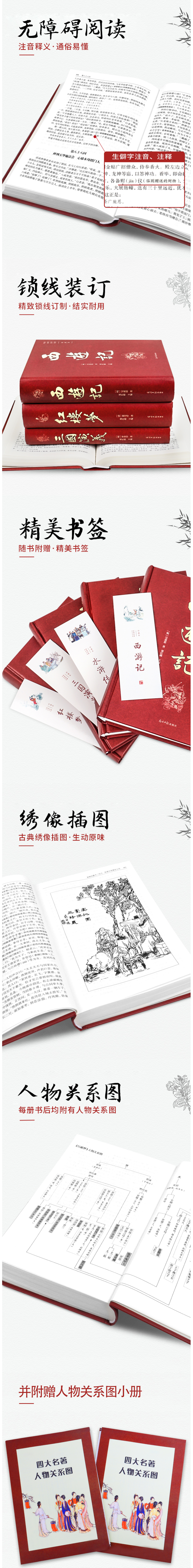 精装硬壳烫金封面,全文无删减足回原版原著,原汁原味,带彩色绣像,美轮美奂,内文插图,生动形象,四本全部自带人物关系图,超大超厚,带泡沫纸箱防水纸塑封膜三层包装,保证书完好无损。