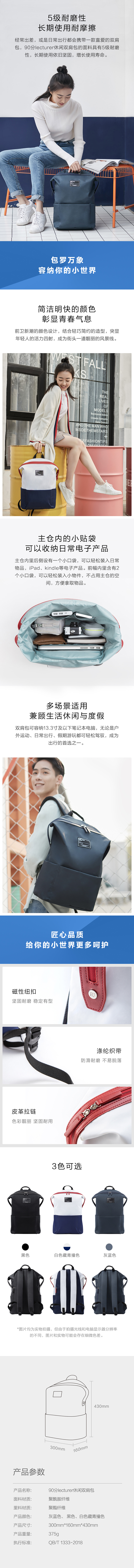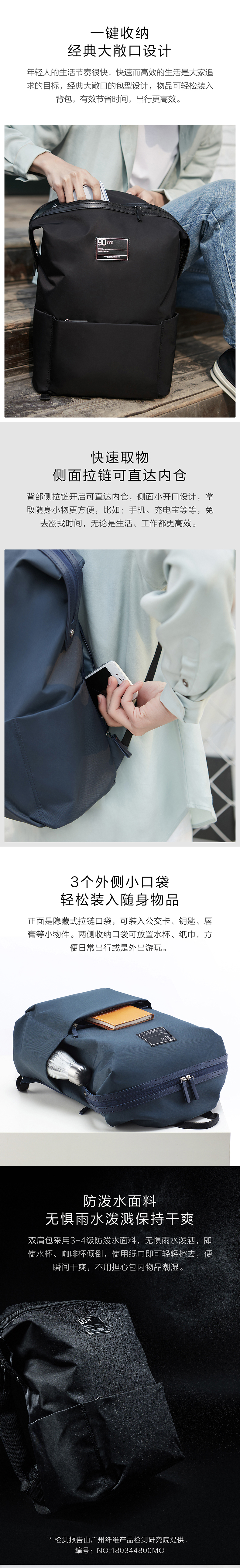 这款双肩包采用75D尼龙纱线,细腻的质感,相比普通面料,耐磨性高于其他所有纤维,能经受上万次折挠而不断裂。面料具有5级耐磨性,长期使用依旧坚固,增长使用寿命。2-4级防水,不担心包内物品受潮。