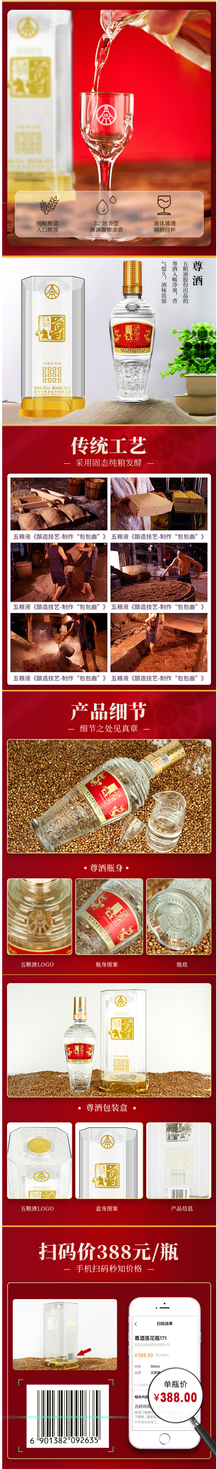 这款五粮液股份尊酒,是一款浓香型白酒,由四川宜宾五粮液股份有限公司出品,执行标准号:GB/T10781.1(一级),是用水、高粱、大米、糯米、小米和玉米酿造而成,酒质清澈,酒香气扑鼻,口感绵柔回甘不上头、不易醉、醒酒快,酒酒精度52%vol。