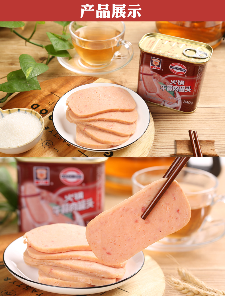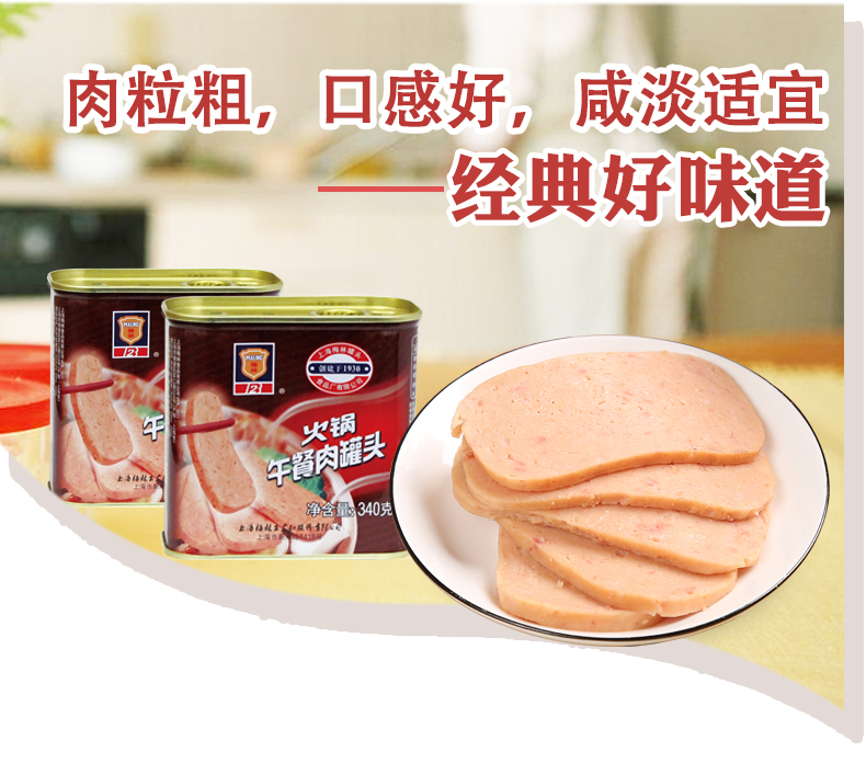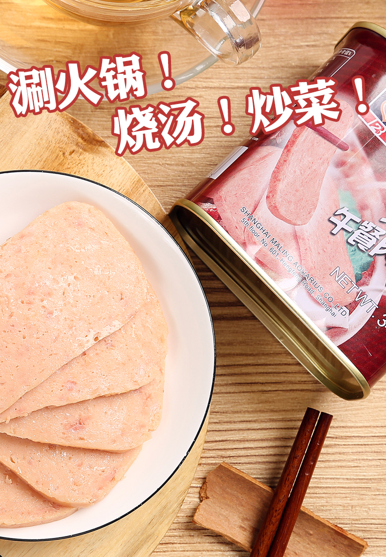 =44元 到手价,规格为340g*4罐,梅林专为火锅设计的午餐肉罐头,天气寒冷,涮火锅必备。精选优质猪肉为原料,天然香料配置,肉粒粗,咸淡适宜,香味醇厚,适合涮火锅、烧汤和炒菜等。