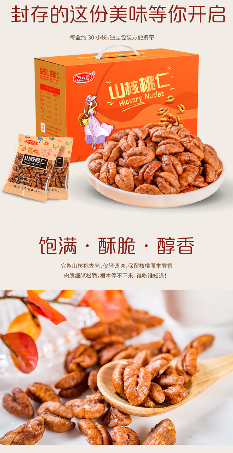 天猫方五哥旗舰店98元,可领20元优惠券,实付78元到手,临安山核桃仁,是来自中国临安天目山脉的天选好果,这里山清水秀,远离城市喧嚣,每一颗山客套宅清风细雨的滋润下茁壮成长,山核桃成熟自然脱落后,为保留原始的味道远离过度加工,进行了纯手工剥壳的自然风味,使得山核桃仁饱满、酥脆、醇厚。