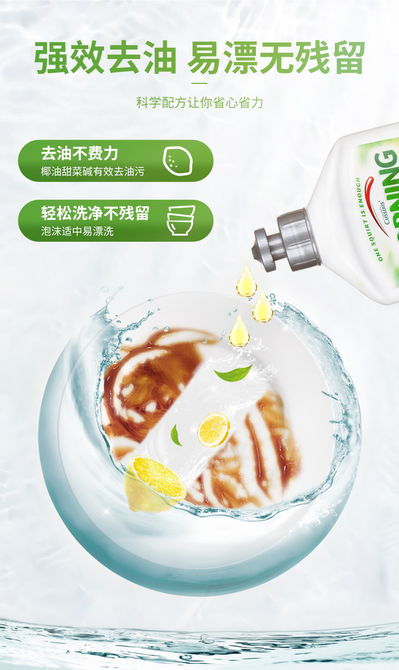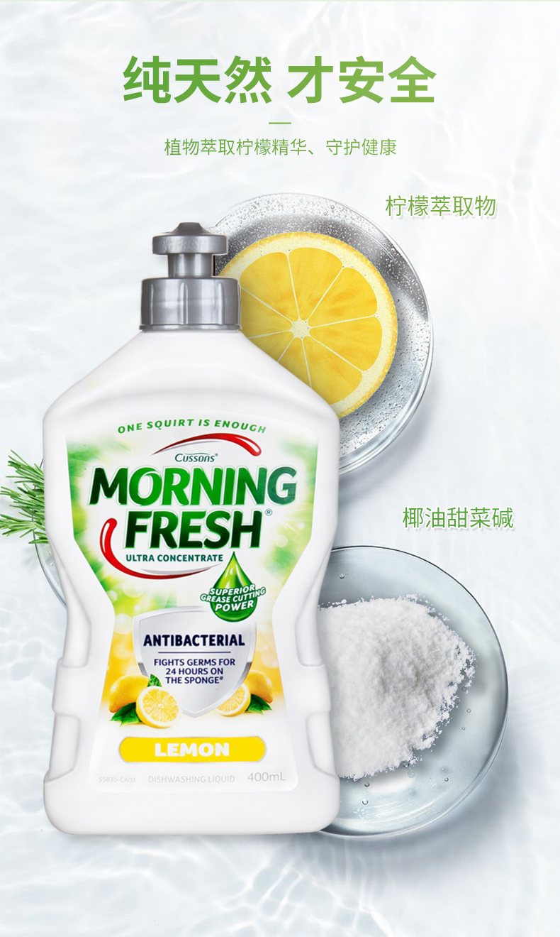 这款MorningFresh 超级浓缩洗洁精,连续30年澳洲市场销售第一。采用无毒柔和的食品级天然配方,从天然植物中提取精华成分制成,去油污能力强,却不伤手。因为是浓缩的,所以每次只需轻轻挤出一滴就可以轻松洗去油污了,1瓶400ml的浓缩液大概可以洗4000个碗碟。