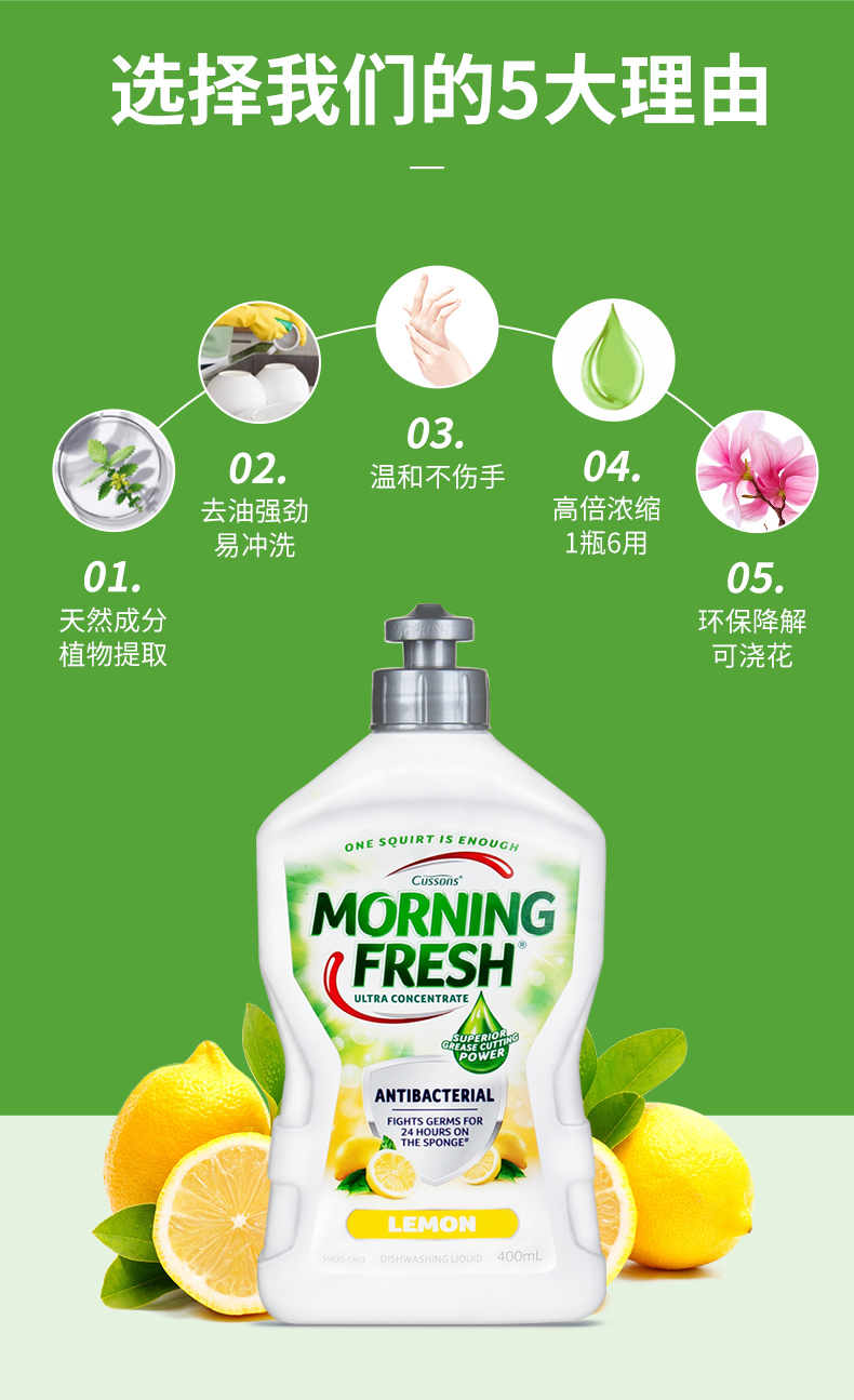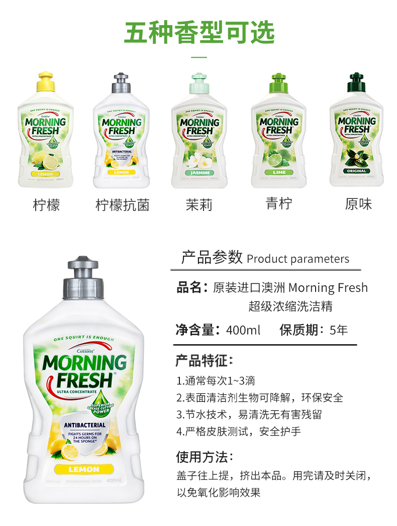 连续30年澳洲市场销量第一 MorningFresh 高浓缩洗洁精 400ml*3瓶 45.9元包邮