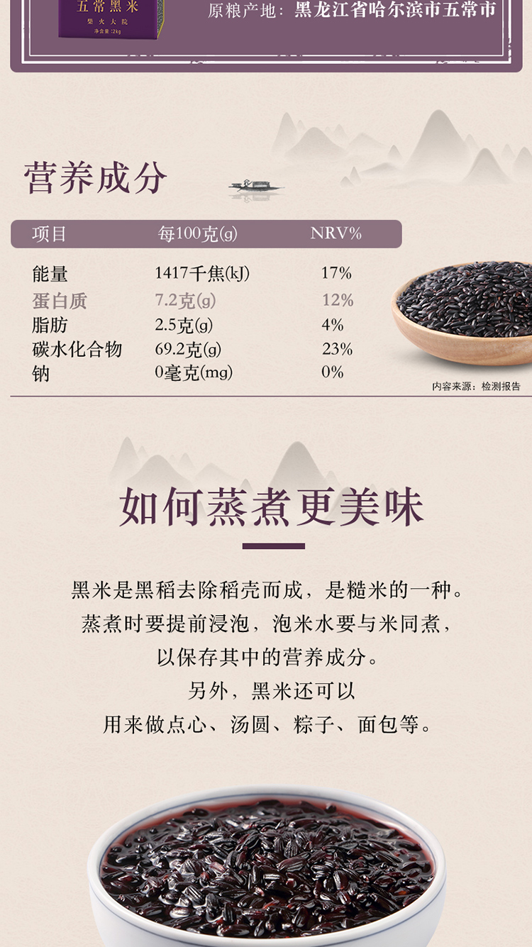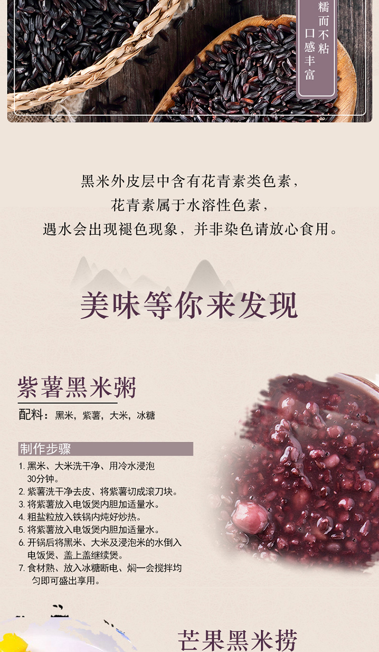 小编购买多次。注:黑米米粒外部有一坚韧的种皮包裹,不易煮烂,需先浸泡再煮。