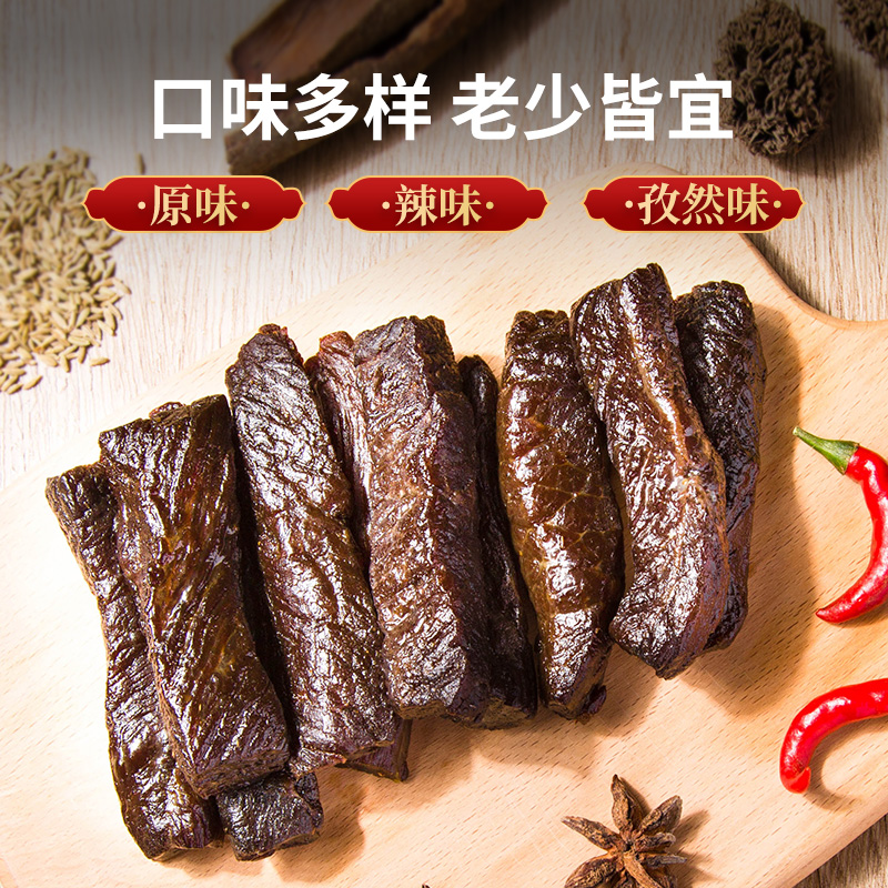 由于牛肉干是牛肉去除水份制作而成,1斤牛肉干需要4斤鲜牛肉,所以在价格上要比市面上的鲜牛肉要贵不少。