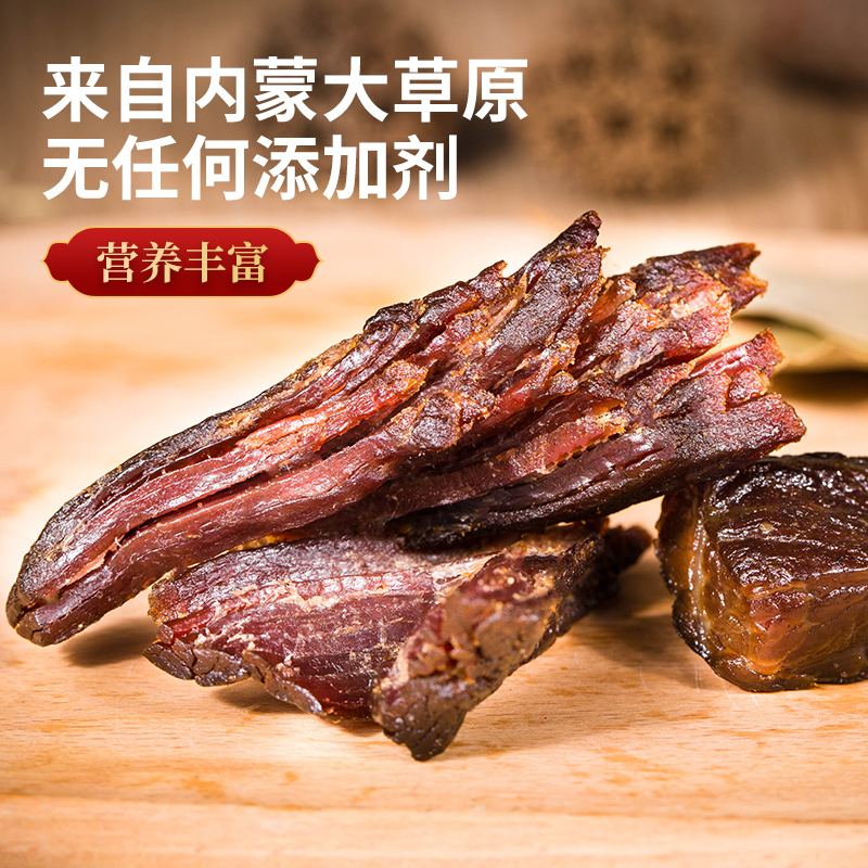 风干牛肉是蒙古族的特色食品,他可以追溯到成吉思汗时代,蒙古铁骑,披坚执锐,横扫欧亚,其超强的战斗力和耐力是因为具有良好的后勤保障——风干牛肉功不可没。他保质期长,易储,热量高,被认为是蒙古大军的秘密武器之一,亦被誉为“成吉思汗的军粮”!