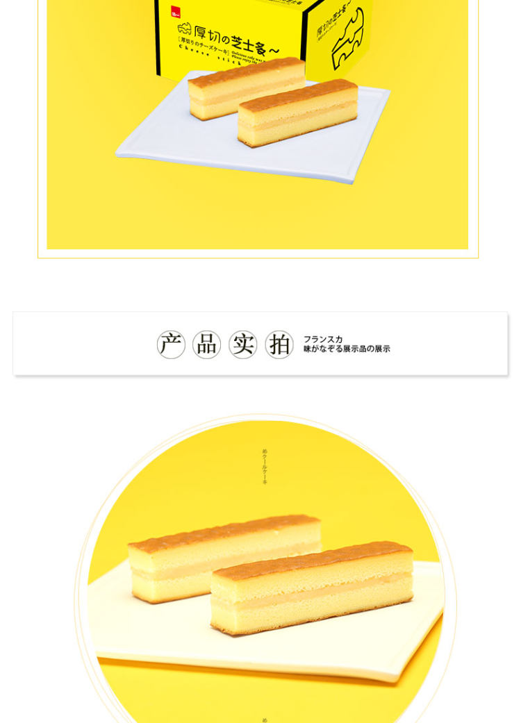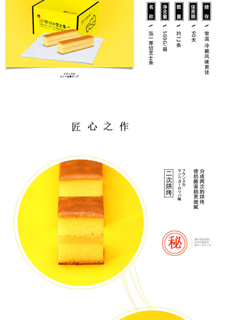 浓厚芝士 鲜切蛋糕 独立包装。采用进口奶酪制作,松软蛋糕夹着浓厚芝士,甜而不腻,入口即化,非常好吃的蛋糕,冷藏以下,口感更棒,赠运费险。领券链接点此