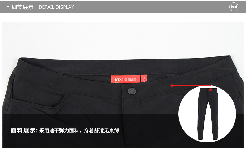面料中还混有9.8%氨纶,使面料具有四向弹力,即上下左右都拥有弹性,伸展性好还抗皱,在腿部活动时没有拉扯紧绷感,具有良好的穿着体验。