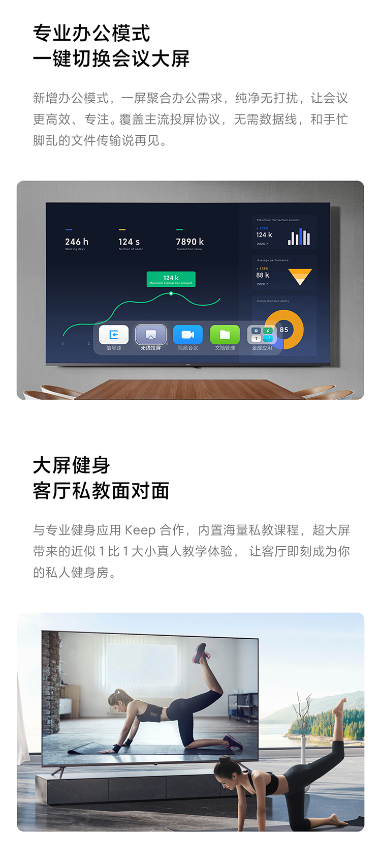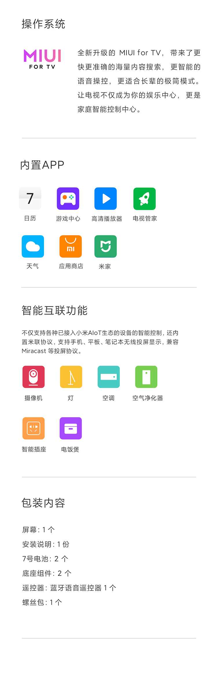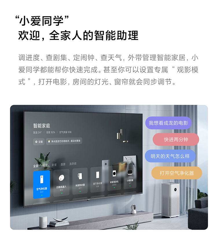 首推无干扰纯净办公模式,同时覆盖主流三大投屏协议,7种投屏方式,无网也能投屏,而且支持标准、儿童、极简、办公四种模式无缝切换,方便用户适配多种使用场景。内置小爱同学3.0,可实现遥控语音双控制。