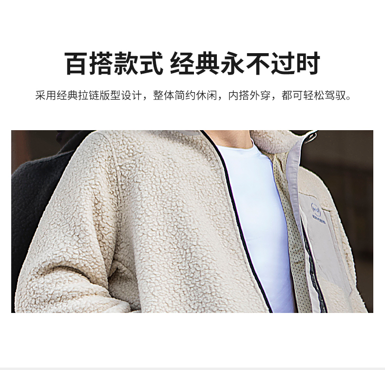 在款式上,修身版型,半高立领可以很好的护住脖子,主拉链使用知名日本YKK拉链,收束袖口不易倒灌风,适合直接外穿。