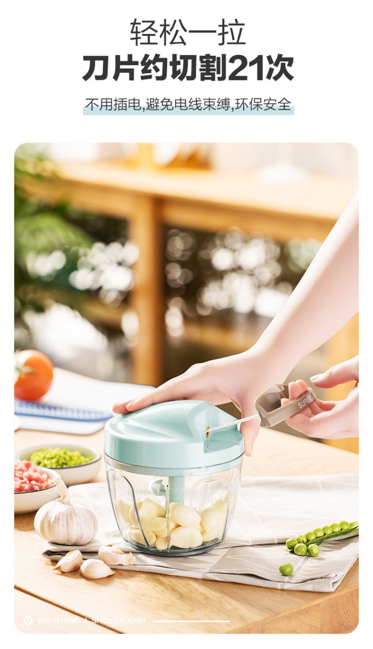 天猫苏泊尔敬创专卖店39元,下单立减10元,可领10元优惠券,实付19元到手,苏泊尔正品,厨房调料宝物,加固螺旋多层刀柱,锋利坚硬,轻轻一拉,快速切割约21次,蒜末,肉泥,姜末,辣椒末等一秒碾碎,美食分分钟做出来!不用插电,环保安全。厨房必备小型料理机!领券链接点此