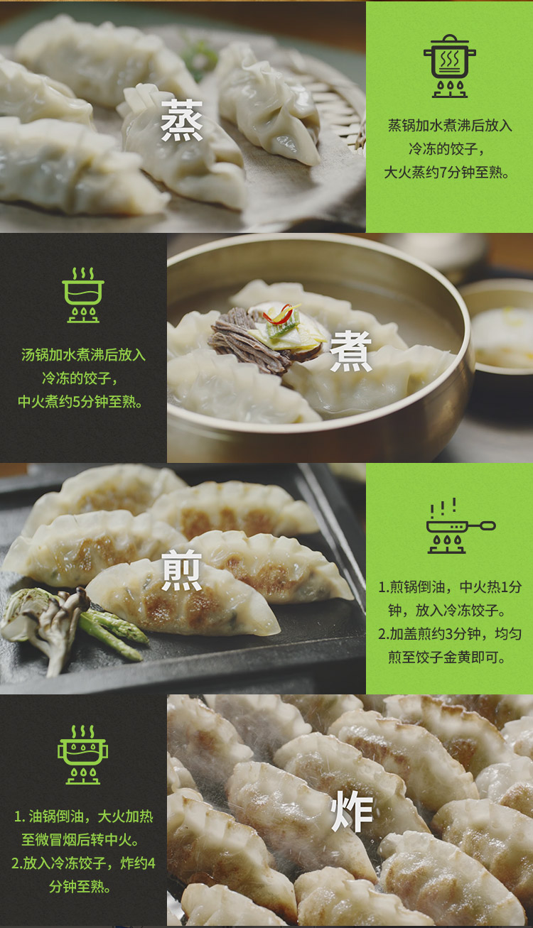 2.是熟冻的,意思是煮半熟后再冻起来的,自己煮的话比较容易熟,还能蒸煎炸都行,吃法多样,不需要专门买蒸饺或者煎饺了。