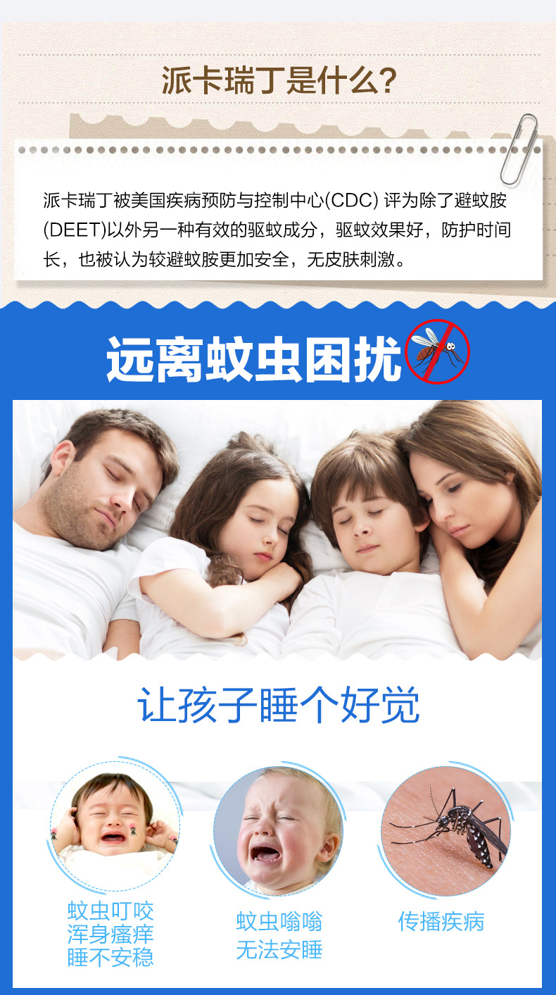埃卡瑞丁于1998年由德国拜耳研发,是一种赶走昆虫的驱虫剂,相比于“避蚊胺”对皮肤会产生各种问题,埃卡瑞丁对皮肤的相容性非常好。拥有五大权威机构认证,世界卫生组织WHO认证、美国儿童协会认证、美国疾控中心认证、美国环保局认证、美国食品药品安全局认证。