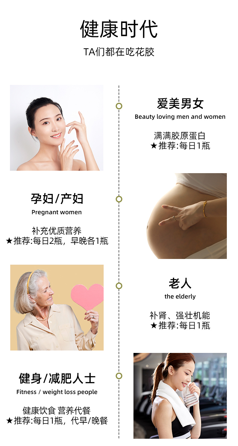 1、需要滋补的女性,有效补充胶原蛋白而且吃后不胖,使肌肤光滑有弹性,孕妇使用可有效滋补,帮助产后恢复。