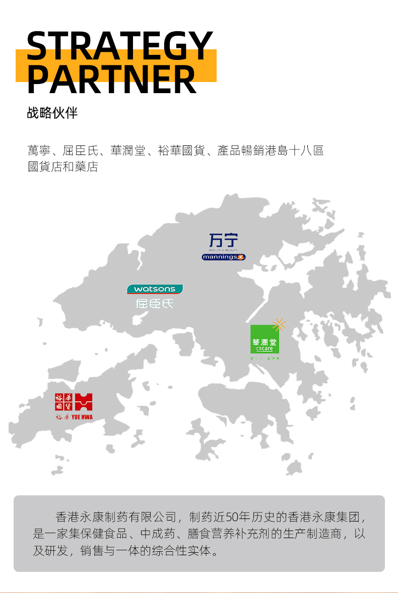 深圳港品一家实业有限公司是香港永康制药有限公司在大陆的全资子公司。永康制药有限公司在香港自行建造了高标准制造厂房和研发中心,有较强的自主研发和生产能力。 拥有香港卫生署授予的胶囊剂、丸剂、片剂、洗剂、糖衣片、口服液等各种剂型的生产资质。