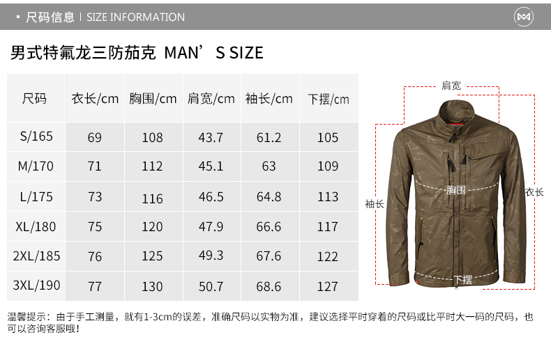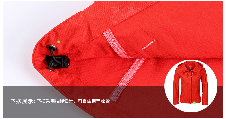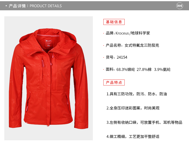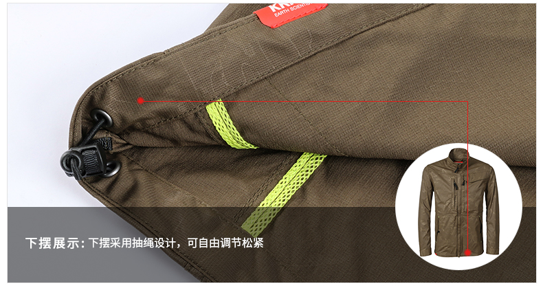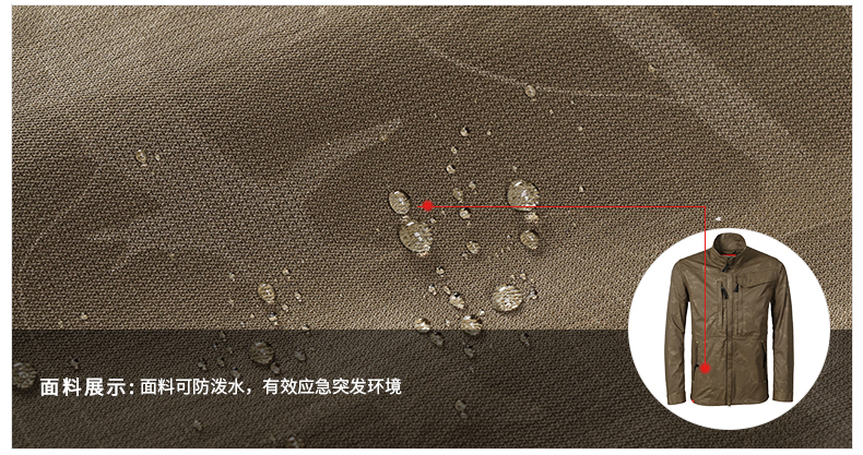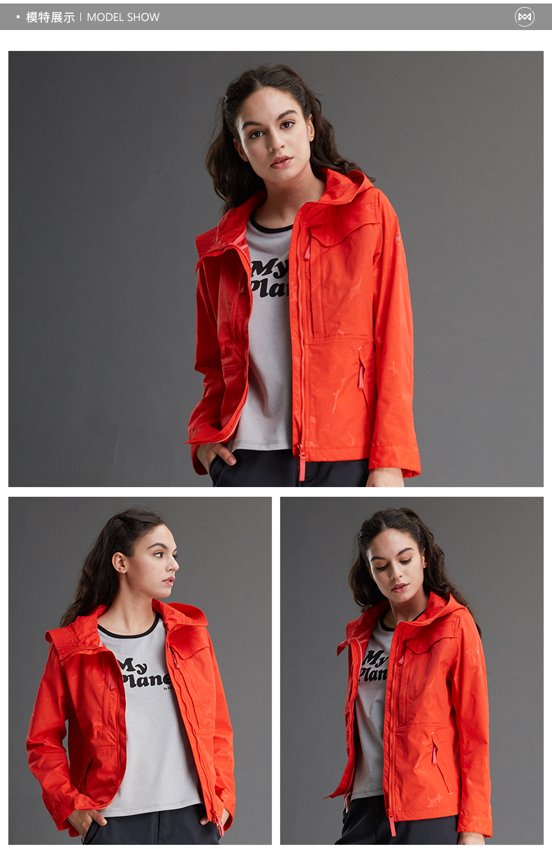 这款地球科学家防风防水夹克,使用特氟龙防水抗污防油三防面料,比中等略薄的厚度,成分以68.3%锦纶为主耐磨和速干,再增加27.8%棉手感上会更柔软,也能吸湿,最后是3.9%氨纶具有适度的微弹力,在活动时没有拉扯紧绷感,穿着更舒适。
