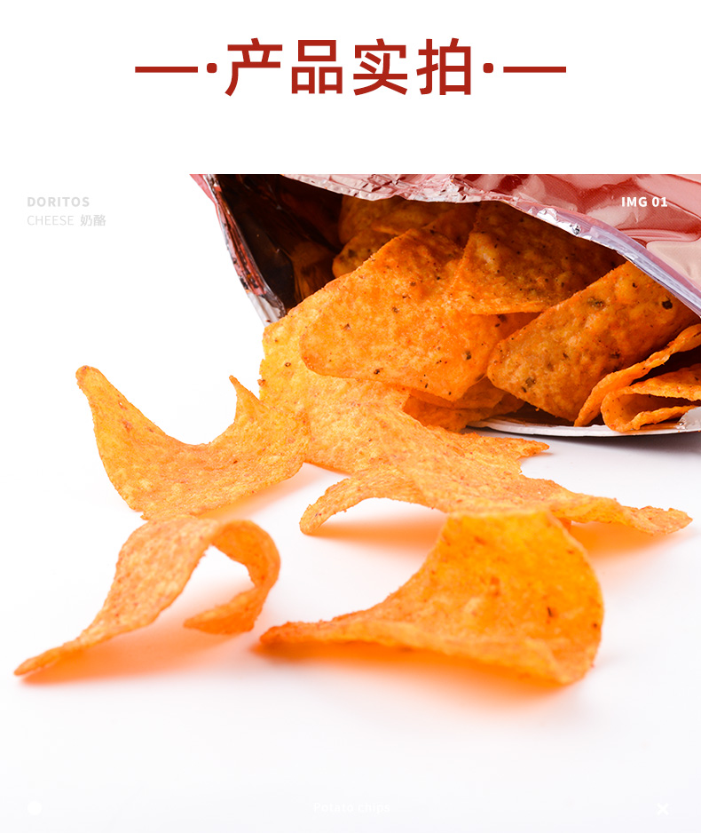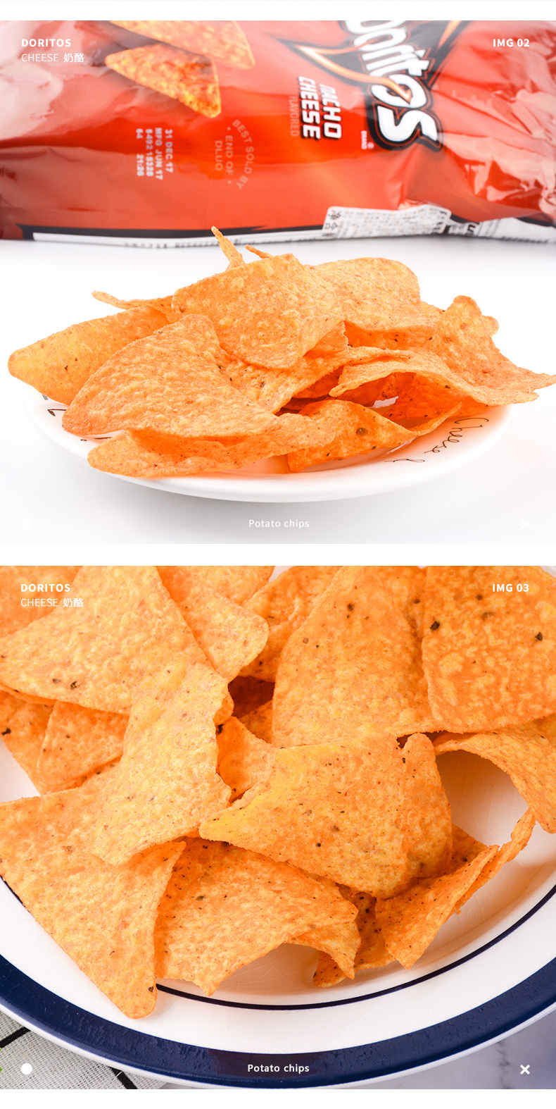 这款多力多滋玉米片是一款膨化薯片,使用本土优质玉米为原料,三角形状,香脆大片,入口咔吱咔吱脆。