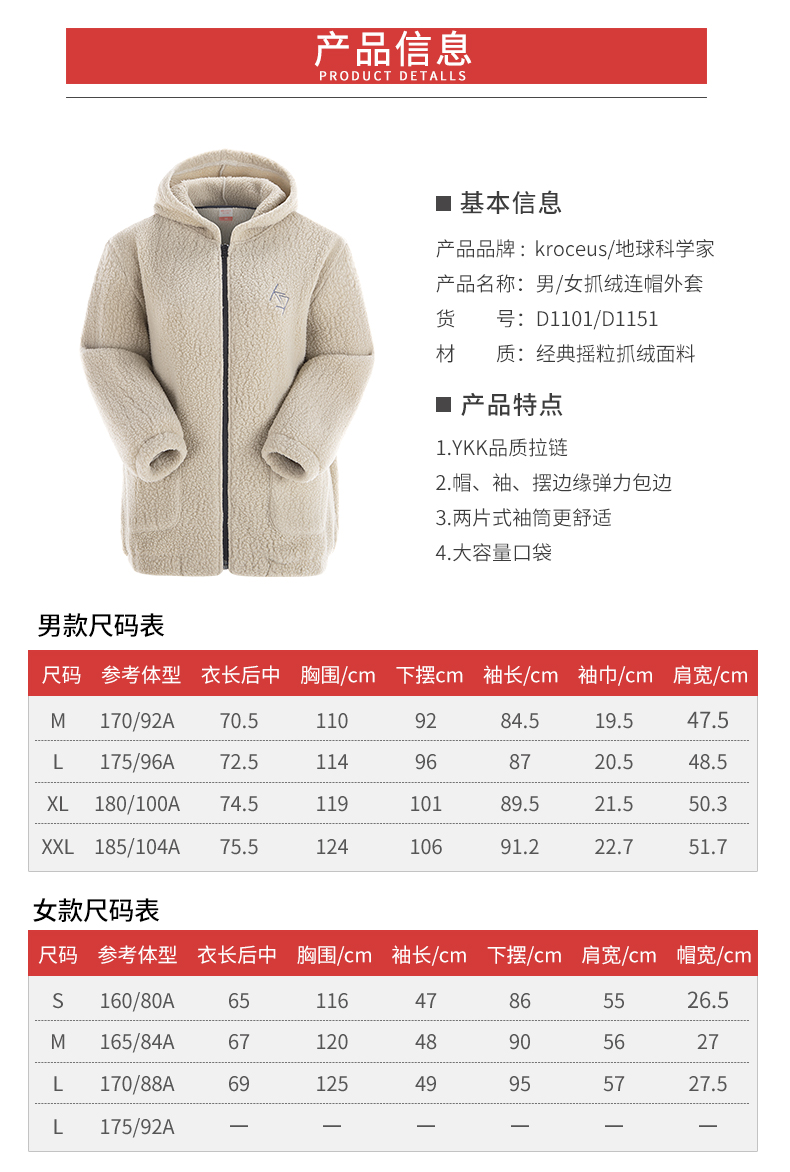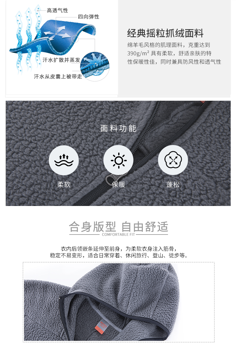 这款地球科学家的抓绒衣是19年的秋季款,采用390g/㎡的高克重长毛绒抓绒面料,内衬全是短绒毛,手感非常柔软也很舒适,保暖效果也好,正适合春秋季节穿。