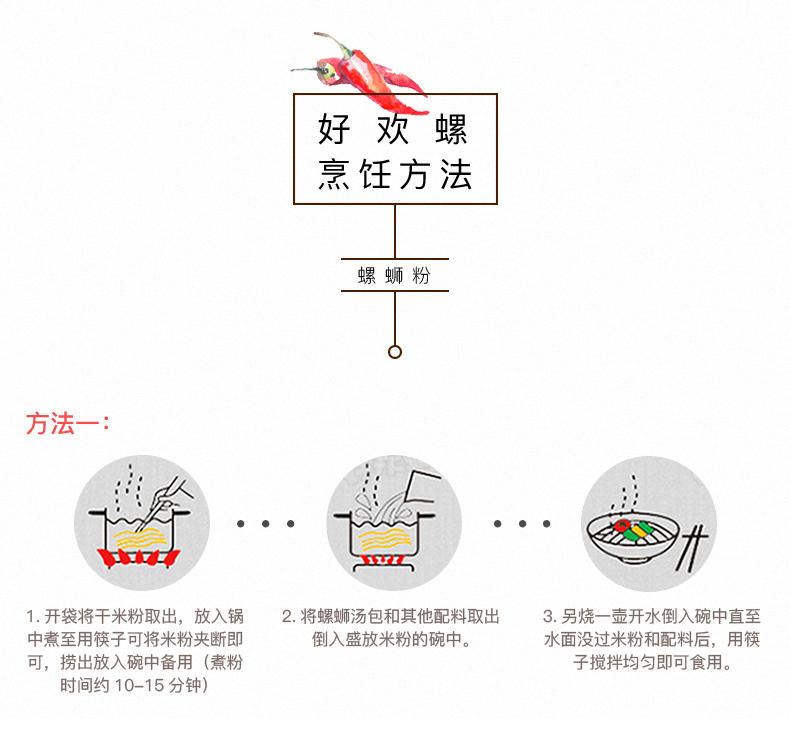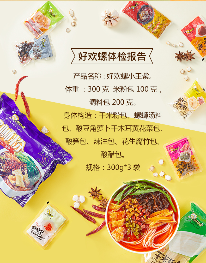 螺蛳粉是广西的传统小吃,具有辣、爽、鲜、酸、烫的独特风味。好欢螺一直口碑不错,螺蛳粉届扛把子。选料正宗,香辣可口,粉也是劲道有嚼劲。此款螺蛳粉为水煮型,内有丰富配料:卤水螺丝肉包、花生腐竹包、萝卜酸豆角包、黄花菜木耳包、酸笋包、酸醋包、红油包~