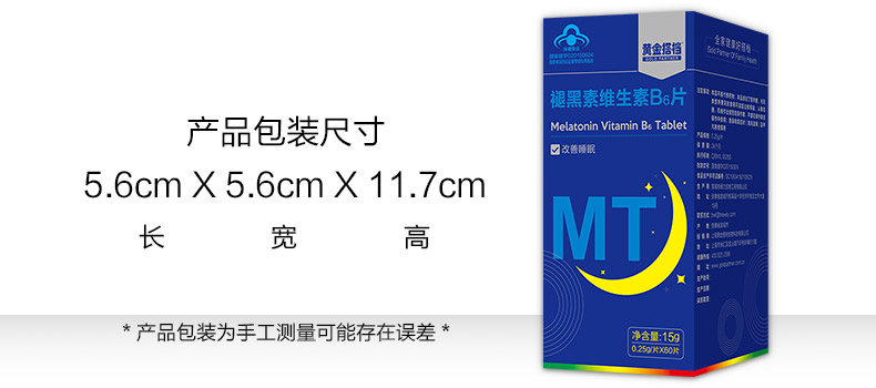 这款褪黑素维生素B6片,适合用于睡眠状况不佳者,每100g含1.02g褪黑素、0.99g维生素B6,可以改善睡眠、快速入睡。退黑素俗称"脑白金",又称"松果体素",是大脑松果腺体在夜间分泌的一种改善睡眠的激素,它不像其他激素那样只能影响某些特定的脏器,而是可以调节体内其他激素的平衡,补充人体内褪黑素可以提高免疫力,调节生理节律,内分泌系统和生殖系统。