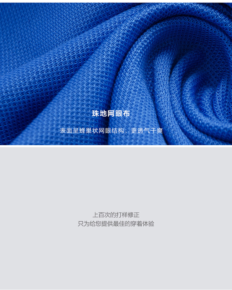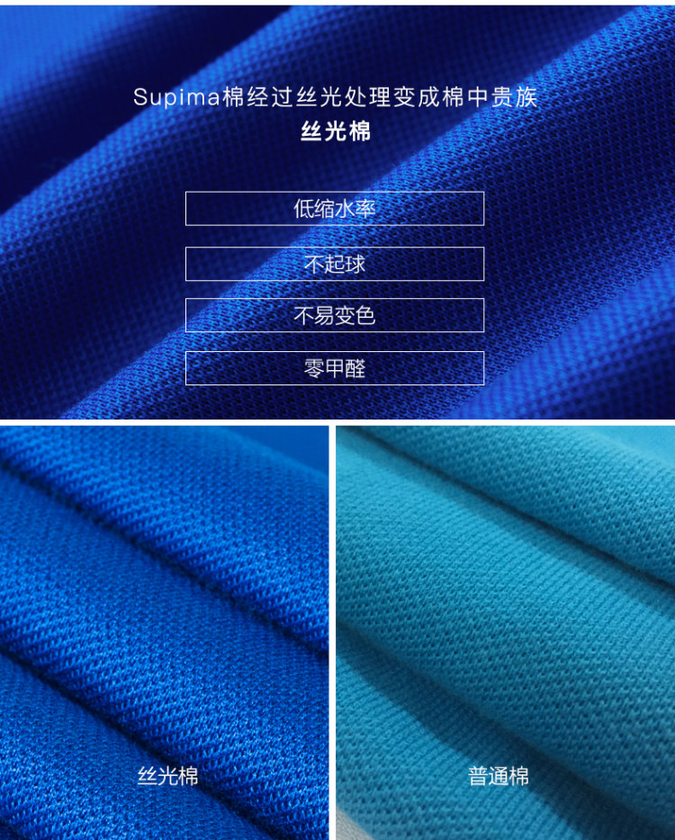 2、面料会选用长绒棉/皮马棉/丝光棉、科技速干等高端材质,织成带微弹力的珠地网眼面料,透气不沾身;