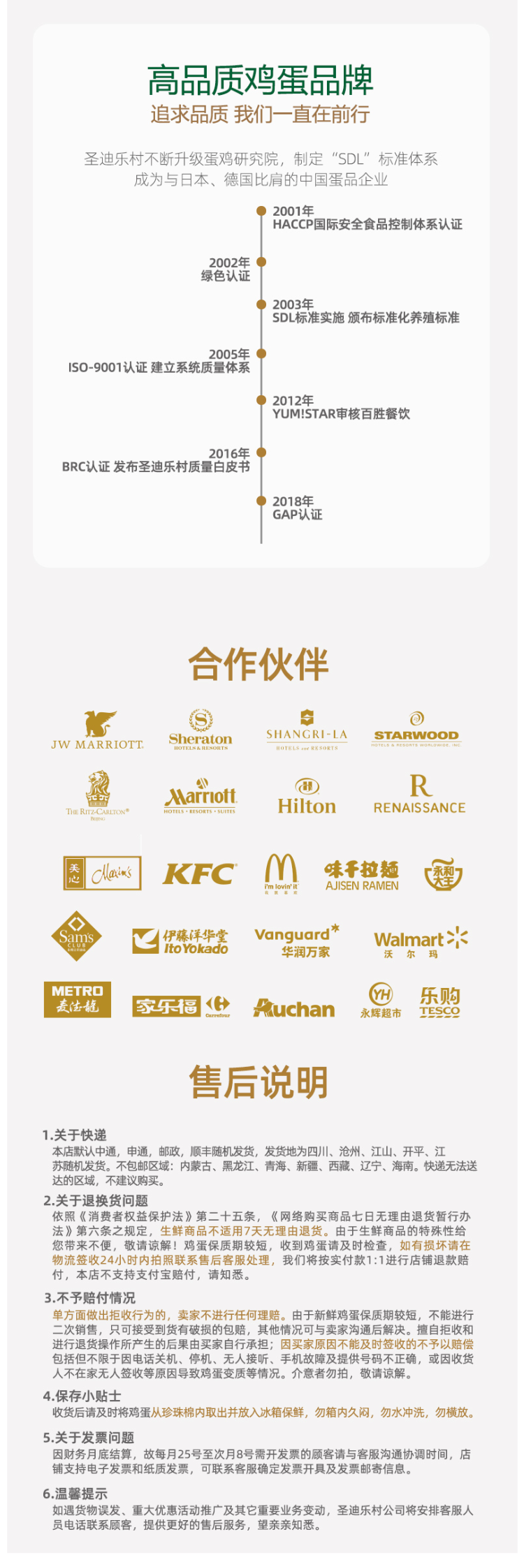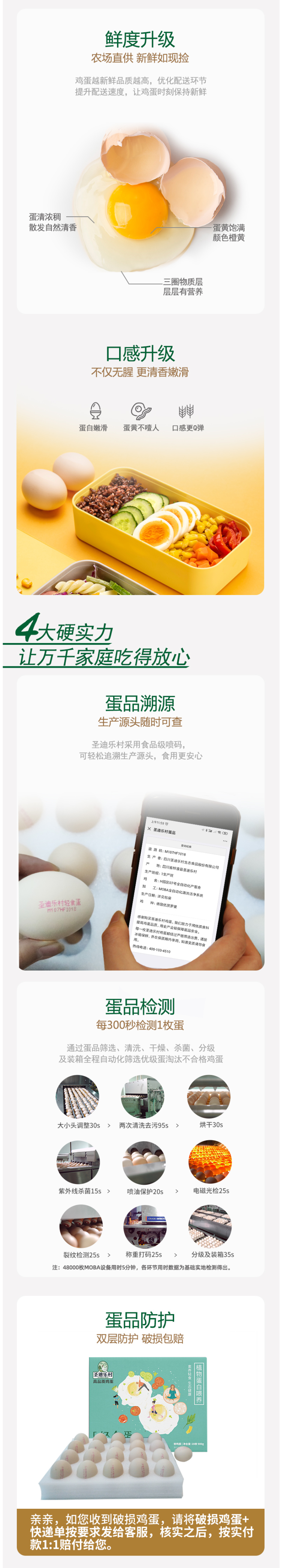 圣迪乐村是国宴峰会指定的蛋品供应商,采用德国罗曼种鸡,谷物喂养,每一个蛋品都可溯源,拒绝使用抗生素激素,同时引进MOBA设备,通过紫外线杀菌,至今未检出沙门氏菌,是放心安全的鲜鸡蛋,达到A级标准。