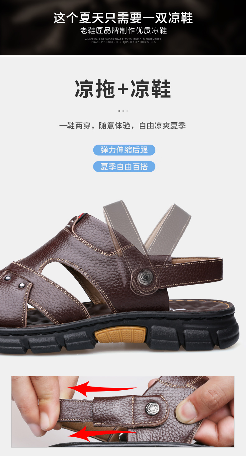 天猫老鞋匠旗舰店99元,可领30元优惠券,实付69元到手,这款夏季 真皮凉鞋,采用头层牛皮制作,质感细腻柔软,结实耐磨不易起皱,聚氨酯加厚软底升级了厚度增加了乳胶垫,使其更加柔软舒适,防滑耐磨,轻松应对户外各种环境,弹力伸缩后跟,凉鞋+拖鞋自由切换,夏季潮男必备!