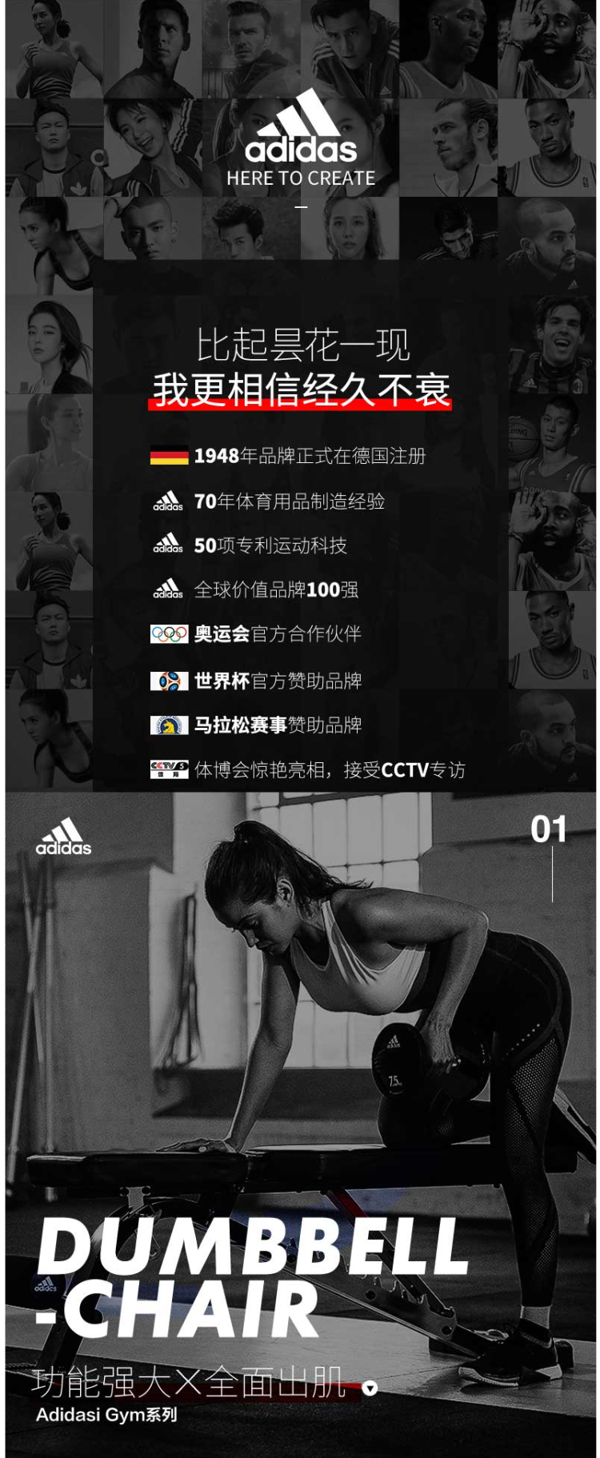 这款阿迪达斯多功能卧推凳,适合三角肌训练、胸肌训练、肱二头肌训练、肱三头肌训练、背部肌群训练、掌长肌训练。三角精钢结构,能提供强大支撑力,可承受100kg内的体重。