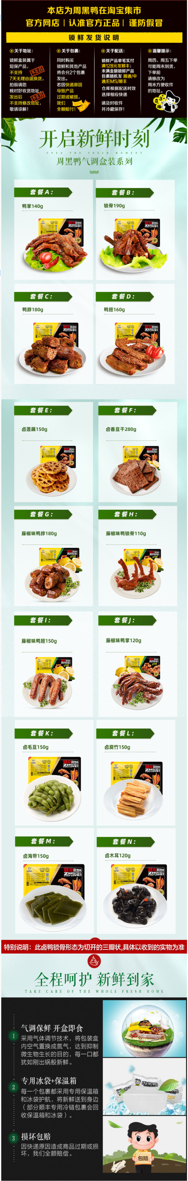 淘宝周黑鸭品牌店39.9元,可领15元优惠券,叠加店铺满减,下单5件实付68.8元到手,锁鲜装,新鲜生产。有鸭掌、鸭锁骨、鸭脖、鸭翅、卤莲藕、卤香豆干可选,超多款式口味可选,喜欢吃什么,自由组合。