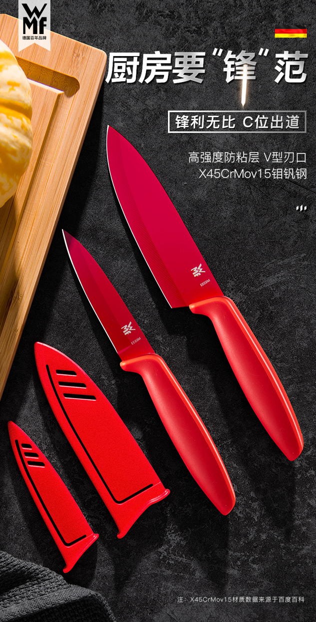 天猫wmf轩赟专卖店,第一款/2件套 69元,可领30元优惠券,实付39元到手.X45CrMov15不锈钢 持久锋利易清洁。
