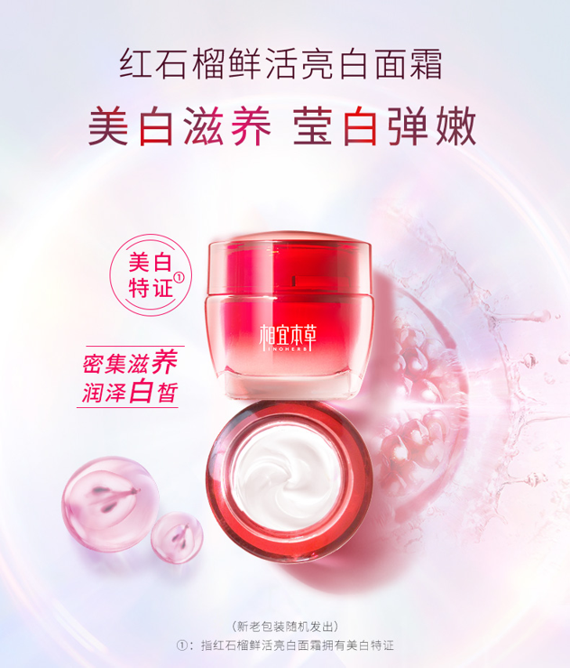 天猫相宜本草官方旗舰店159元,下单立减10元,可领110元优惠券,实付39元到手,红石榴鲜活亮白面霜,国妆特字,实力认证,核心亮白成分红石榴,葡萄籽+姜根协同增效,密集滋养,润泽白皙,滋养不油腻,补水更亮白,轻松养出好气色。赠运费险,过敏包退。领券链接点此