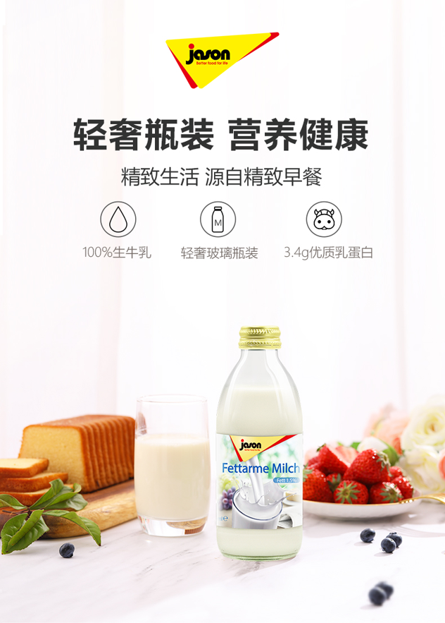 这款捷森 全脂纯牛奶,德国原产原装进口,Jason的奶源在德国西北部的阿默尔兰县,来自专业正产瓶装牛奶以及牛奶制品的Turn-Sahne GmbH公司,奶源品质即便在德国也是数一数二的地方,生产的牛奶不仅在德国本地有销售,还出口全球40个多国家