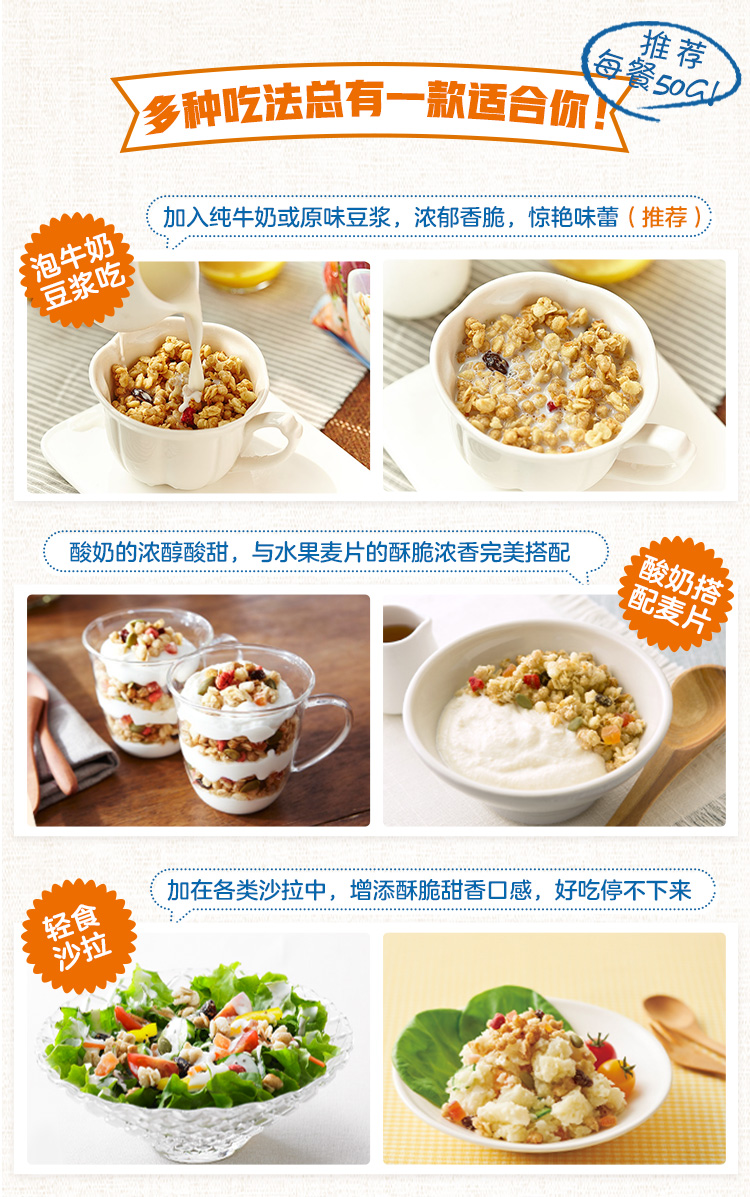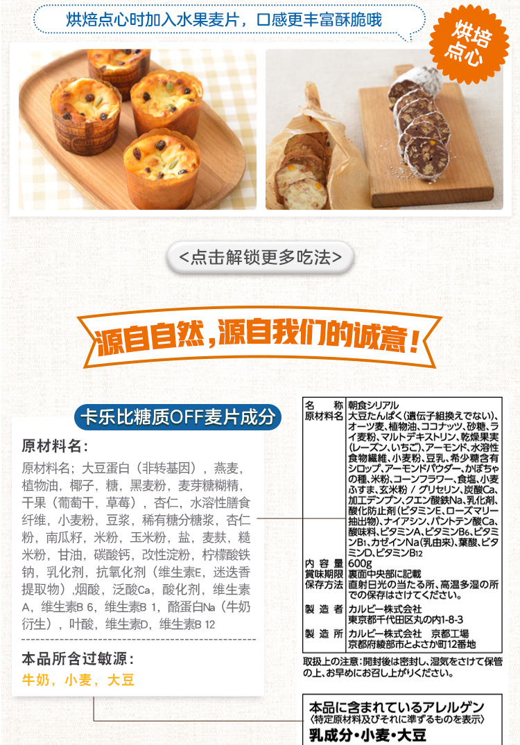 卡乐比的水果麦片非常好吃,口味丰富,可直接开袋干吃,一般作为早午餐泡牛奶、豆浆吃,泡在酸奶里也非常美味。这款麦片生产于日本北海道,非辐射污染区,同时许多原料还是进口的,安全上不用担心,国际官方旗舰店,来源渠道也有保障,可以放心食用。