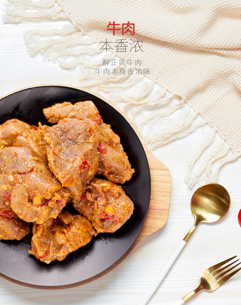 从开创品牌至今,唯其精良的选料,严谨的制作,鲜明的特色,独到的口味。历年来以牌子老,信誉好,品味高而深受广大消费者喜爱,享有“牛肉干三联冠”的美誉。中国人民保险公司给予质量保险,长期被中国国际航空公司选定为国际航班的上机食品。