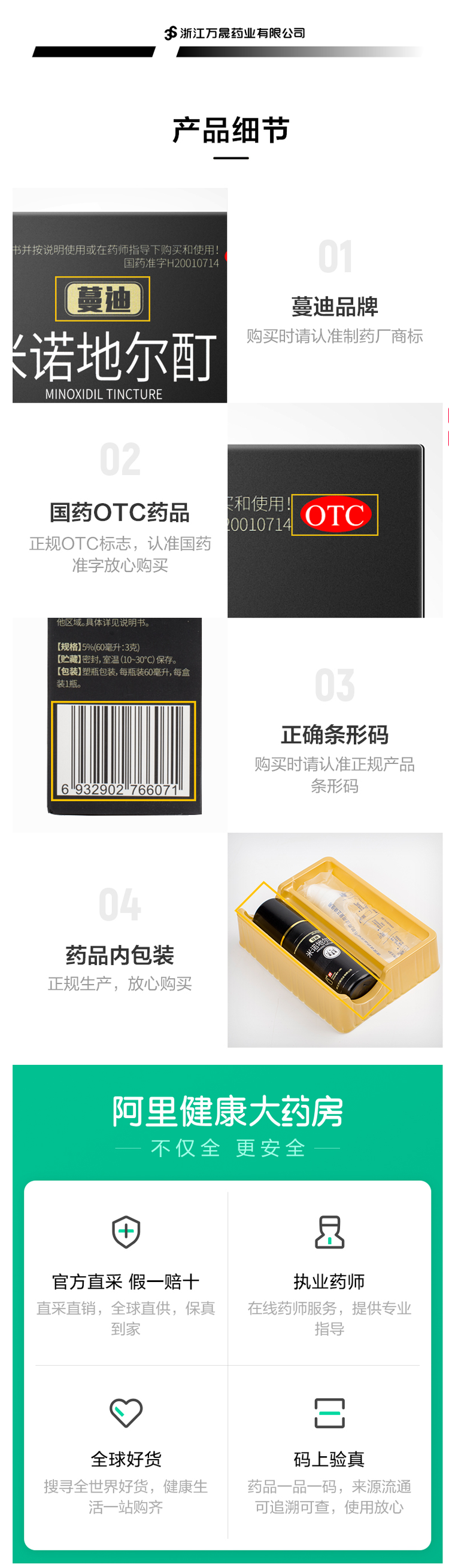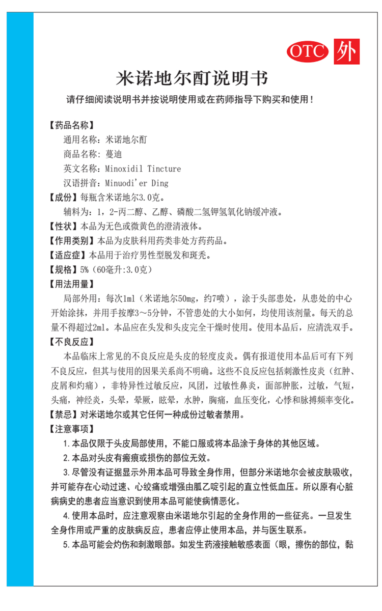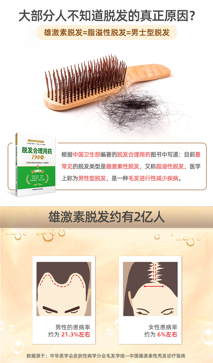 这款是国药准字OTC非处方药,是市面上真实有效的生发药用品,成份为米诺地尔,是一种周围血管舒张药,局部长期使用时,可刺激男性型脱发和斑秃患者的毛发生长。适用于男性雄激素源性脱发、女性雄激素源性脱发、斑秃患者。