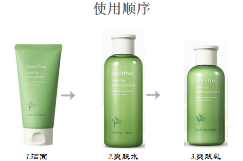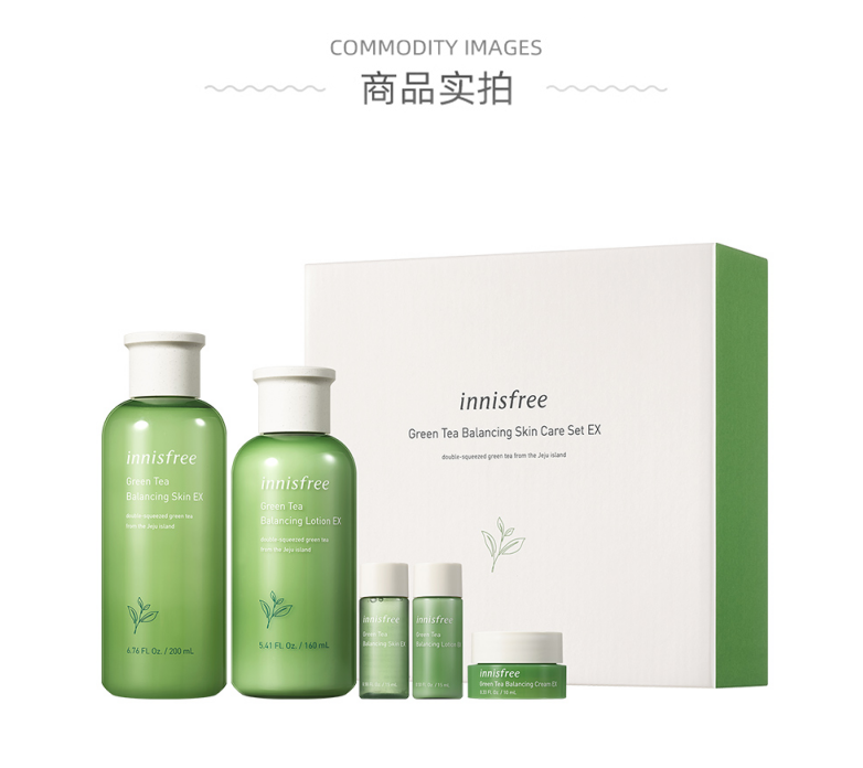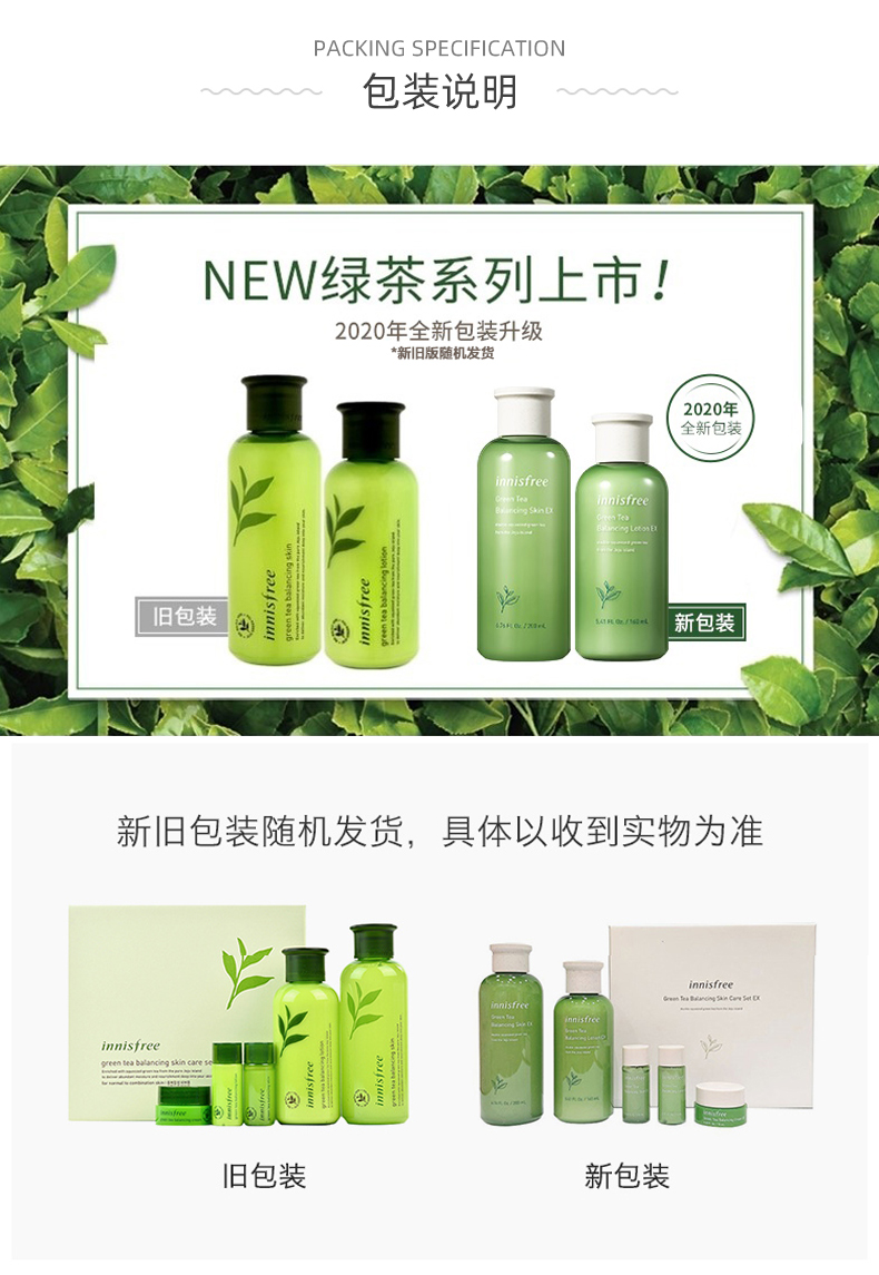 新绿茶精粹平衡柔肤水200ml+新绿茶精粹平衡柔肤露160ml,还有三种柔肤水、柔肤露和面霜的旅行装。