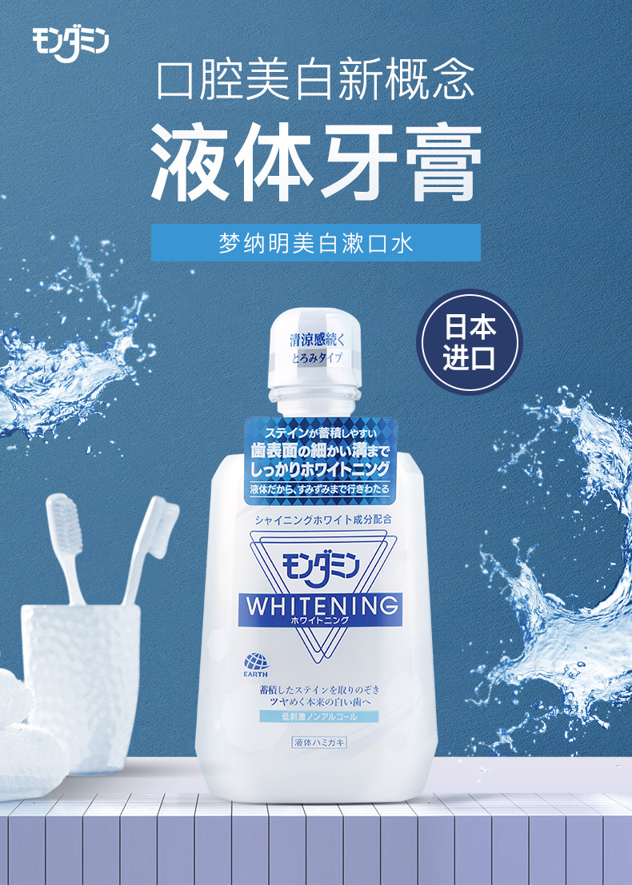 这款安速 梦纳明 美白星空漱口水,日本原装进口,既是漱口水也是牙膏。含云母和二氧化钛美白成分,不伤牙釉质,低泡沫清洁,使用效果上可替代牙膏。不含酒精、乙醇,温和不刺激,入口柔和,清爽薄荷香味,口气持久清新。