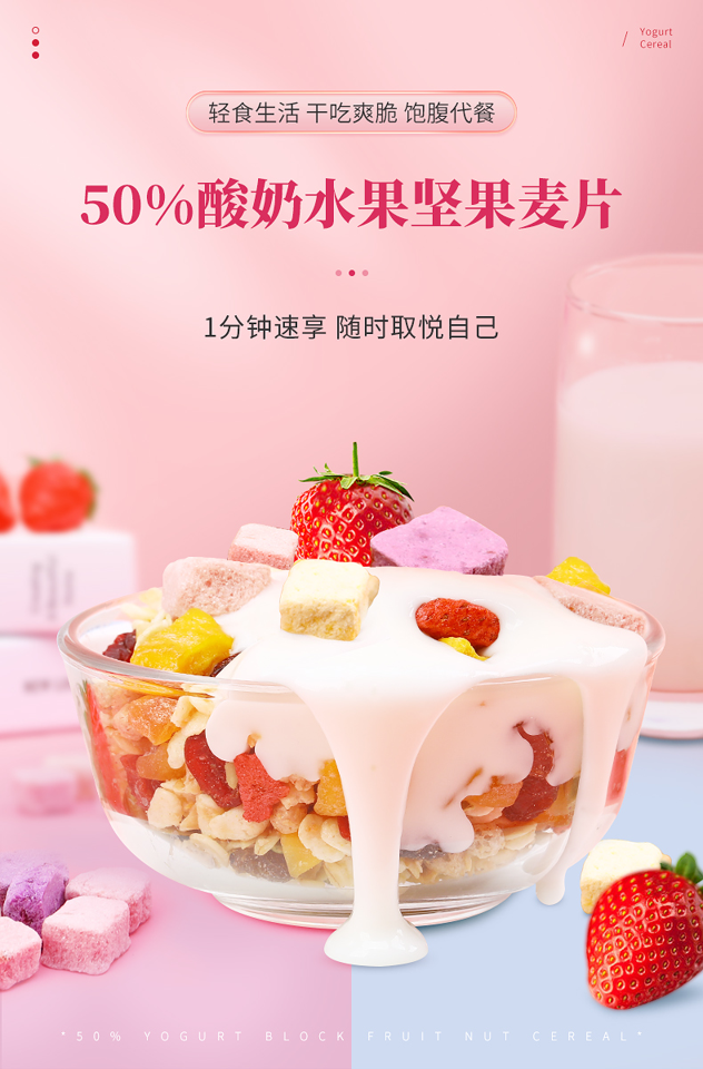 这款优佳水果酸奶果粒燕麦片,是3种超大酸奶块、4种麦片坚果和7种冻干水果的混合,都是经过低温烘焙而成,非油炸,营养又健康,可开袋即食,也可混合酸奶或者牛奶吃,代餐无敌。