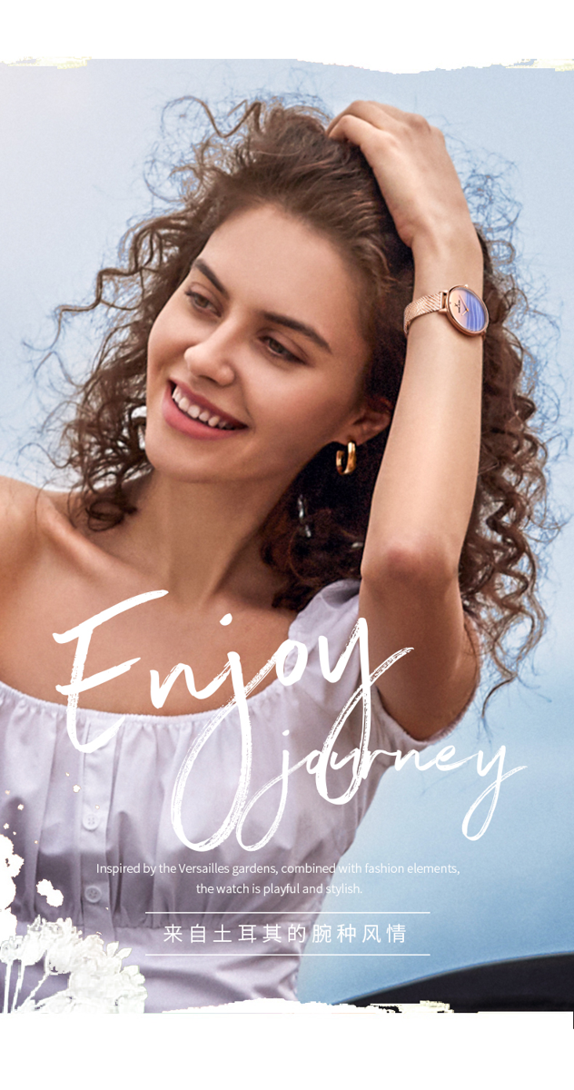 这款Daniel Klein 时尚女表,土耳其爱琴海的日出晕彩,糅合海浪翻滚的细碎蓝色泡沫,浪漫灵动,精巧3D海浪刻画,身临其境般纵情享滨海之蓝的清新,简约金色两针搭配水钻零时刻度,表盘直径35mm,不锈钢米兰编织表带,表带宽度12mm,矿物质强化玻璃镜面,30M生活防水。