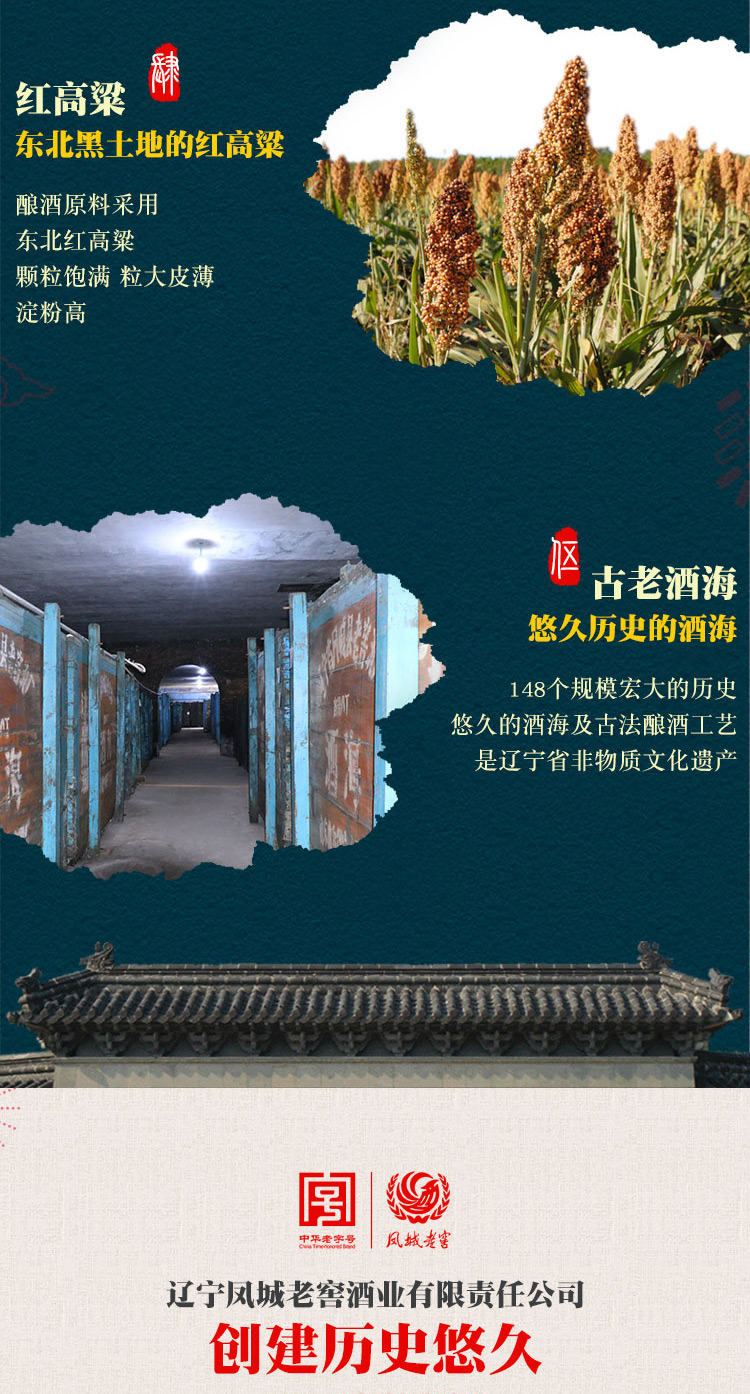 凤城老窖是中华十大文化名酒之一,辽东第一名酒,以麸曲酱香,口感纯正著称。当年唐太宗李世民畅游凤凰山,途经“烧锅”时,闻得酒香,酿酒主人以佳酿相敬,唐太宗李世民饮后龙颜大悦,以后每年征“东烧锅”为特贡御酒,进献朝廷。