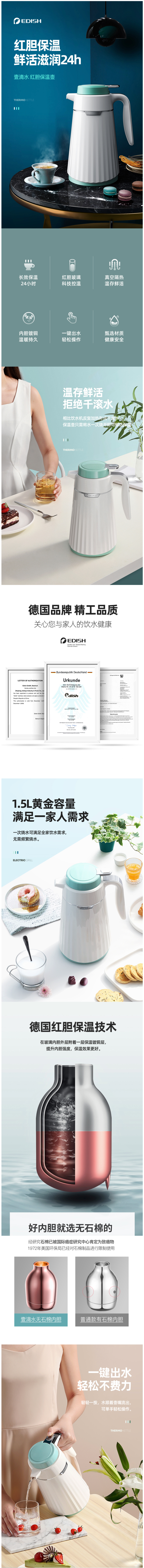 这款壹滴水Edish保温壶,容量是1L,内胆是高硼硅玻璃,还运用了红胆保温技术,在玻璃内胆外层附着一层保温镀铜层,提升内胆强度,更耐用也更保温,无石棉垫(石棉为致癌物,普通保温壶有)。
