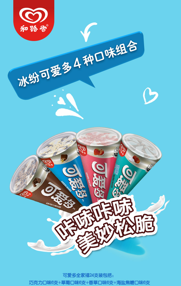 天猫和路雪旗舰店102元,可领15元优惠券,实付87元到手,巧克力、香草、棉花糖红覆盆子、芝士香栗4种口味各6支,共24支装,融化包赔,新鲜直达。