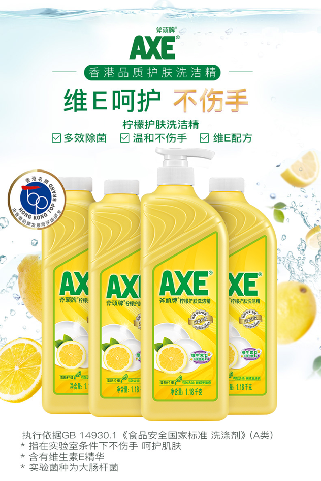 AXE 是香港南顺集团旗下的清洁产品品牌,这款香港 斧头牌 AXE 柠檬洗洁精,属于旗下的维他命E系列洗洁精,香味怡人健康不伤手,清洁能力好。