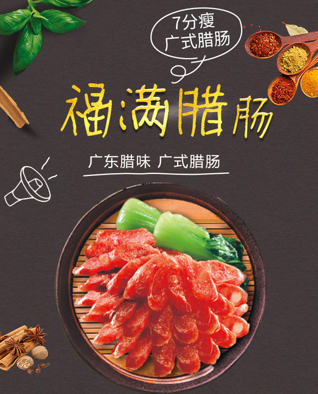 这广州酒家 7分瘦福满腊肠,是经典的广式口味香肠,相较于川式腊肠的麻辣及熏烤的味道,广式腊肠则加入较多的蔗糖和酒。