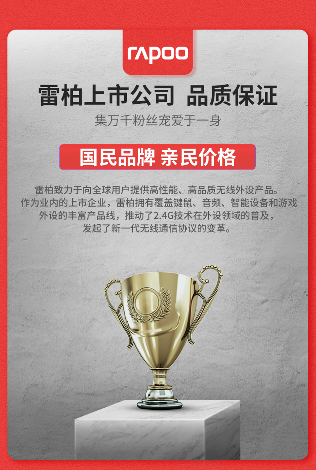 天猫雷柏数码专营店79元,可领40元优惠券,实付39元到手,是正价199元的2折;雷柏创立于2002年,是国内数一数二的外设厂商,11年新三板上市,目前专注于电子设备、电脑软件的开发和销售。