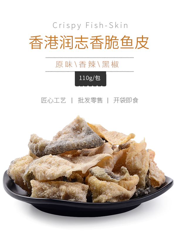鱼皮含有多种微量氨基酸和丰富的胶原蛋白,脂肪含量低,被称为“鱼中之骨”、“肤中之肤”。这款润志 矶烧鱼皮,精选30~40cm的新鲜深海鱼为原料,运用现代食品加工技术剥离鱼皮鱼肉,在保留胶原蛋白层的同时又保留鱼皮原有形状和营养成份,营养健康低脂,食用更放心。