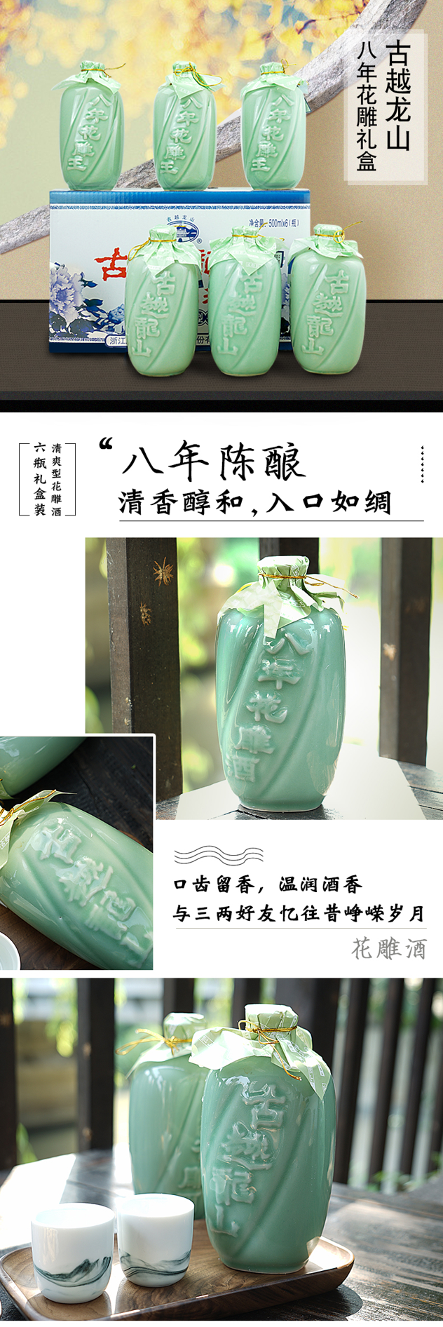 这款古越龙山绍兴黄酒,以糯米、小麦、鉴湖水为原料,使用传统的酿制技艺,农历七月制酒药,八、九月制麦曲,小雪做酒酿,大雪前后投料开酿,用独特的复式发酵工艺发酵90余天,翌年立春开始压榨、煎酒,然后泥封贮藏。