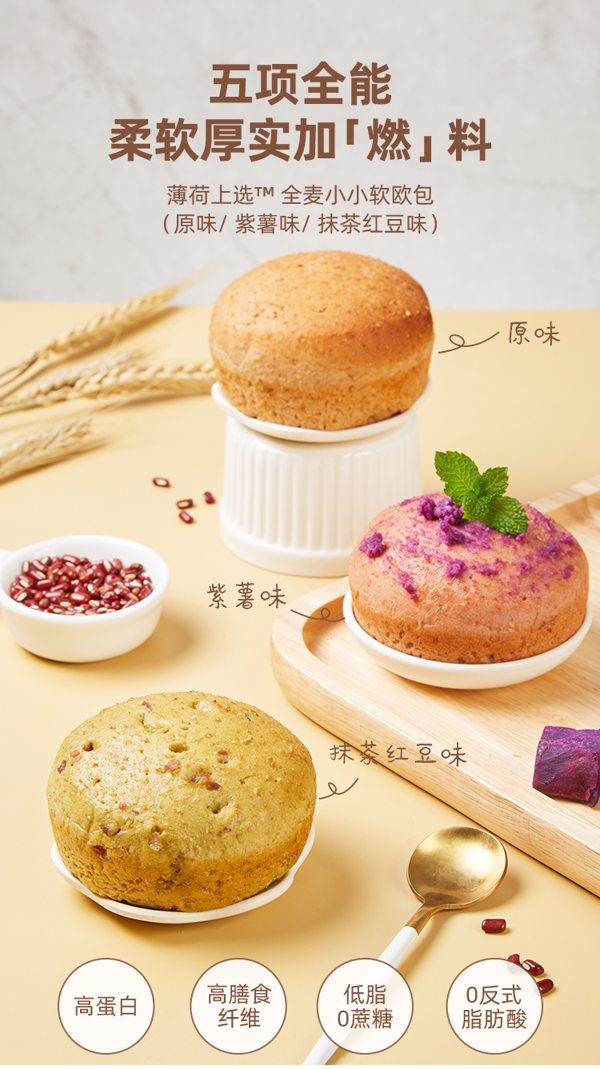 天猫薄荷健康旗舰店29.9元,可领10元优惠券,实付19.9元到手,第二件半价,拍2件34.85元,更加划算。3种口味可选。这款薄荷健康 低脂全麦小小软欧包,≥80%全麦粉,兼顾美味与好身材, 自然谷物原色,不均与气孔,清新小麦麸皮。口感微微湿润,不干硬,柔软厚实不掉渣。60g软欧包蛋白质含量约7.3g,膳食纤维含量约4.1g,脂肪含量仅约1.4g,热量仅约158千卡,每枚添加约600mg共轭亚油酸甘油酯。