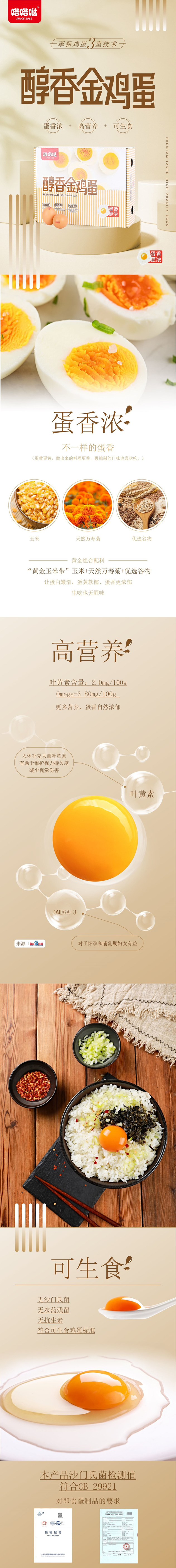 这款咯咯哒金鸡蛋,在蛋鸡的日食中添加了有“叶黄素工厂”之称的天然万寿菊+玉米+谷物,提高了鸡蛋中的叶黄素含量,达到了2.0mg/100g,营养丰富的同时还能养眼。无沙门氏菌,无农药残留,无抗生素,符合可生食鸡蛋标准。优选大个好鸡蛋,平均蛋重超过58g。每只蛋都可溯源,可放心食用。